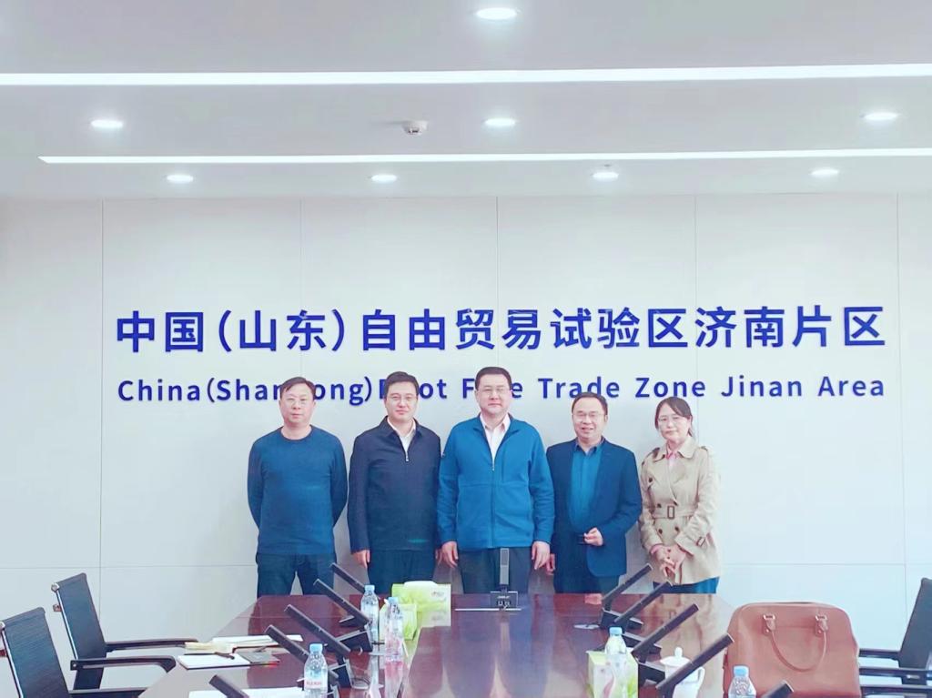 一行来到中国(山东)自由贸易试验区济南片区,受到了自贸区管委会副主任苏卫东、济南高新部部长段连文、济南高新部产业发展办公室副主任王玉虎等领导的热情接待。在座谈会上,双方就自贸区在发展过程中面临的涉外商事法律问题进行了深入探讨。张琳介绍了威尼斯人官网