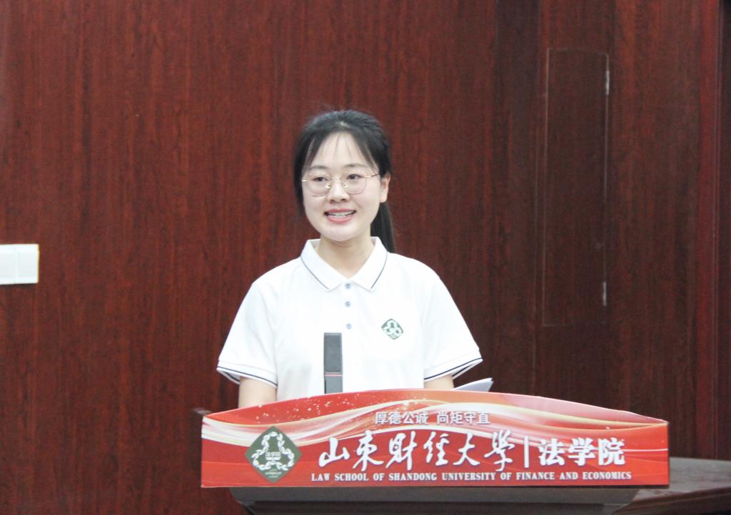 2022级涉外经贸法律人才实验班郑海霞发言。她代表实习同学感谢威尼斯人官网