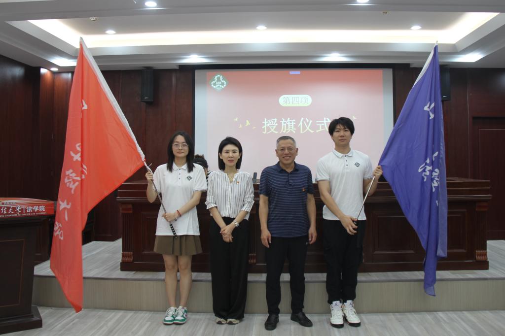 党委书记危红、院长赵信会分别为两支实习团队授旗,实习学生代表肖铭轩、李泽宇接受实习出征旗帜。