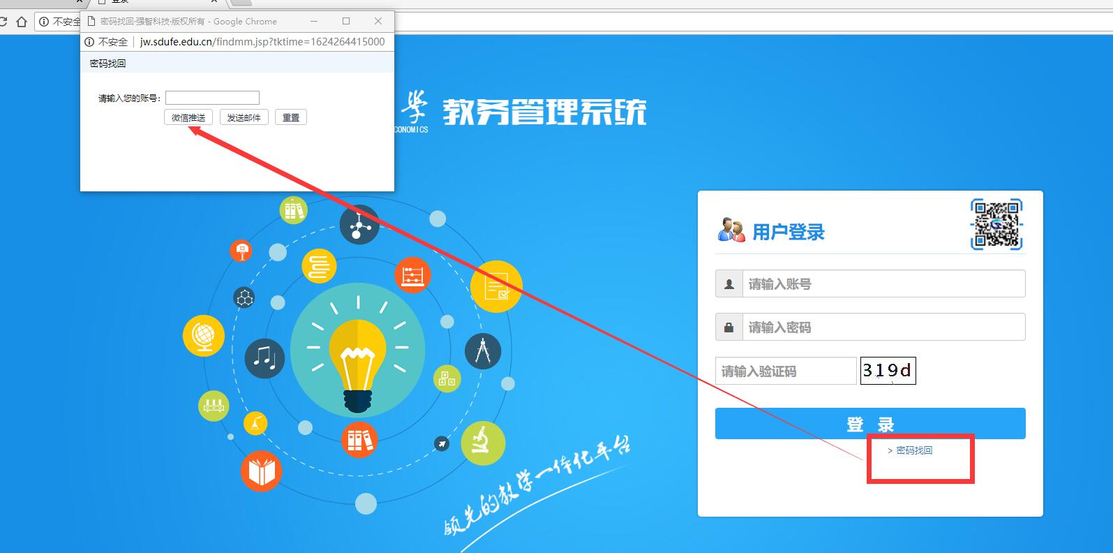 老师、学生也可以关注 学校企业微信() 然后利用微信找回密码。见截图