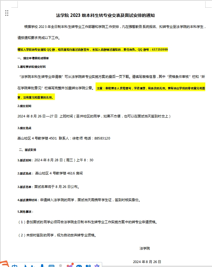威尼斯人官网 2023级本科生转专业面试及交表安排