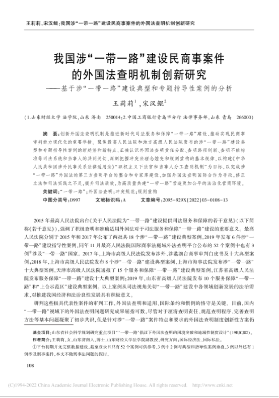 论文的主要内容是:创新外国法查明机制是推进新时代司法服务和保障“一带一路”建设、推动实现民商事审判能力现代化的重要举措。聚焦最高人民法院和地方高级人民法院发布的涉“一带一路”建设典型和专题指导性案例的新趋势和新特点,正确认识外国法查明责任分配、查明路径创新、查明不能标准等司法系统和当事人的共同关切,深刻把握冲突法理念嬗变和规则重构的基本规律,以构建《中华人民共和国涉外民事关系法律适用法》“职权主义下法官和当事人分工查明机制”为目标,以完成涉“一带一路”外国法的第三方查明平台的整合和专家库建设、加强外国法查明国际合作为手段,修正立法和司法实践之不足,提升司法质效,为高质量共建“一带一路”营造更加公平的法治化营商环境。