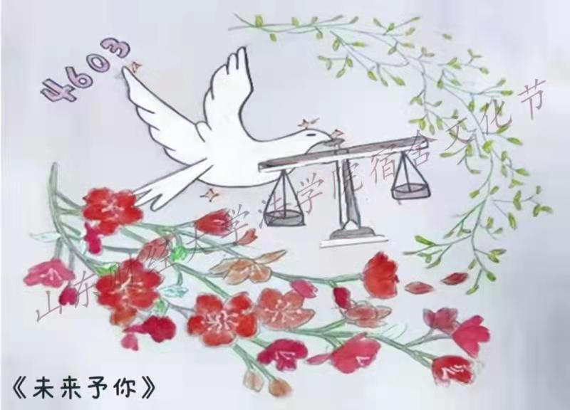 参赛者结合威尼斯人官网学科专业特色、学生培养目标以及和谐美丽宿舍文化内涵,精心设计,构思精巧,创意新颖,独具匠心,运用多种形式和手法,将设计理念融入到作品当中,从不同角度展现宿舍的独特风采。作品《未来予你》中的和平鸽的嘴里叼着的是天平,象征了我们所学的法学专业,希望在未来能够捍卫法律的公平正义,阐释着“挥法律之利剑,持正义之天平;除人间之邪恶,守政法之圣洁”的深刻内涵。作品《踏遍烟海,寻觅星空》运用蓝白紫三色晕染,分别比喻海洋、山川、漫天霞光,寓意着大学生在辽阔的未来天地中展现青春自我。作品《青春无悔,热爱随行》主题围绕“青春、拼搏、热爱”展开,羽毛,天平,博士帽等元素布局和谐,设计新颖,体现了大学生的青春阳光、活力朝气以及法学生的正义严谨。