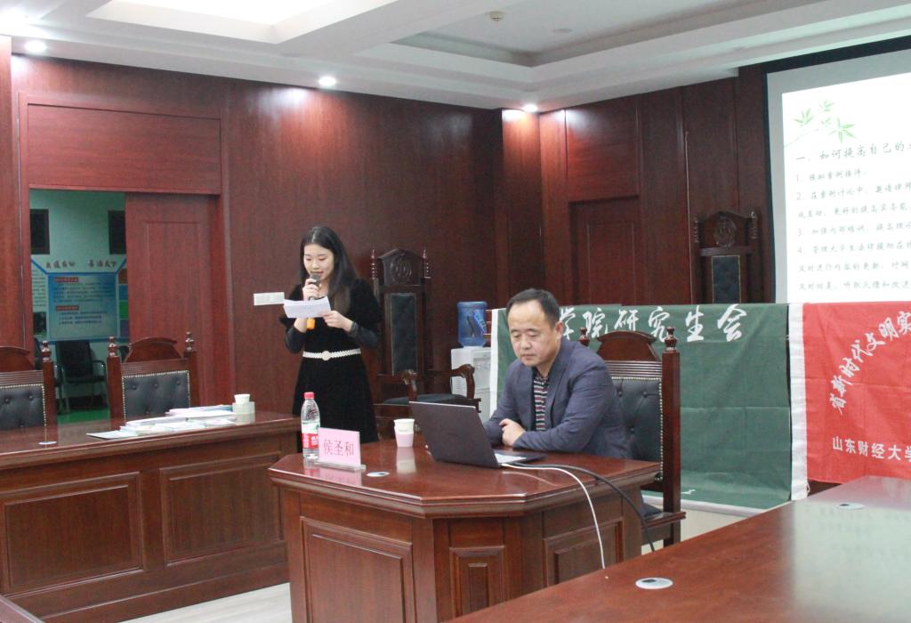 法律援助中心的成立与发展历史,并向大家讲述“榕园说法”系列活动的命名渊源与其成长路脉。接着,侯圣和老师围绕案例接待、案例讨论等四个方面向在场同学分享了提高自身业务能力的方式。