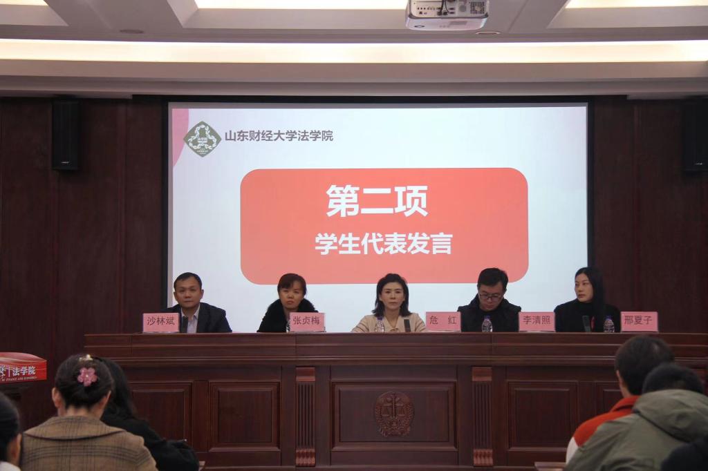 2023级学硕班学生代表于雨童、大学生法律援助中心社团代表熊浩琳分别发言。在场嘉宾为获得首届威尼斯人官网