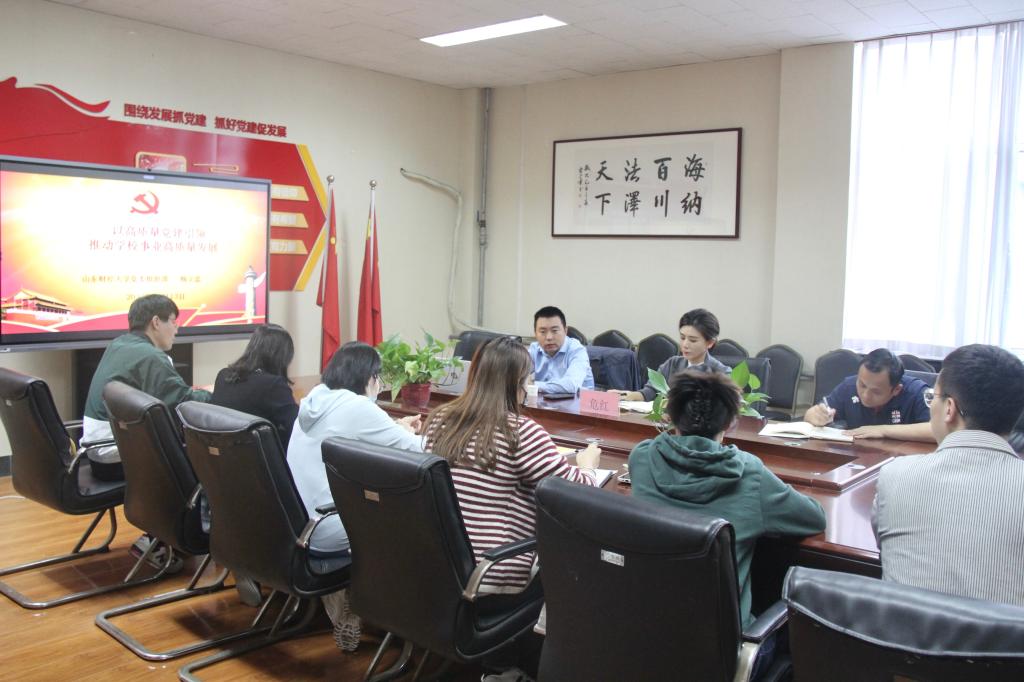 会上,杨立忠从党建“双创”的背景和深入推进“一融双高”两部分讲解以高质量党建引领推动学校事业高质量发展的问题。在“党建示范创建”和“党建质量创优”的背景部分,杨立忠强调,要坚定拥护“两个确立”、坚决做到“两个维护”,持续加强党的创新理论武装,优化干部选育管用工作,全方位培养、引进、用好人才,从严从实抓好党员队伍建设,提升党的组织体系建设整体效能,为强国建设、民族复兴伟业提供坚强组织保证。在深入推进“一融双高”的部分,杨立忠表示,第一,要构建高质量的党建工作体系,把握高校党建的基本性原则、“六个过硬”、“五个到位”和“七个有力”;第二,要健全“融合机制”,充分发挥党建引领作用,健全完善党建与事业发展深度融合机制,打造山财大特色党建与事业发展深度融合品牌,实现高质量党建引领学校事业高质量发展,常态化举办“党建业务提升工作坊”;第三,杨立忠从工作基础、特色优势、创建思路和预期成果四个方面细致讲解学校的党建工作。
