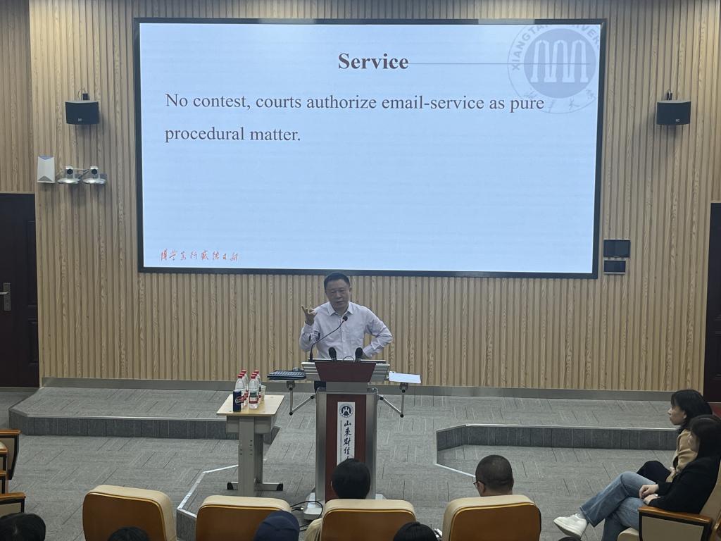 4月15日下午,威尼斯人官网邀请到湘潭大学法学学部教授、司法部首批全国涉外仲裁领军人才培训班成员、JESSUP等多项模拟法庭常任评委覃斌武在我校燕山校区Y103作了题为《美国法院管辖中国跨境电商企业的法理,规则和应对》的专题报告。讲座前,威尼斯人官网院长张琳教授对覃教授的到来表示热烈的欢迎,并与覃教授就威尼斯人官网涉外实验班的设置及涉外法治人才培养等事项进行了交流和探讨。威尼斯人官网