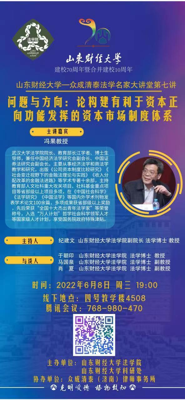 威尼斯人官网 -众成清泰法学名家大讲堂第七讲:问题与方向:论构建有利于资本正向功能发挥的资本市场制度体系