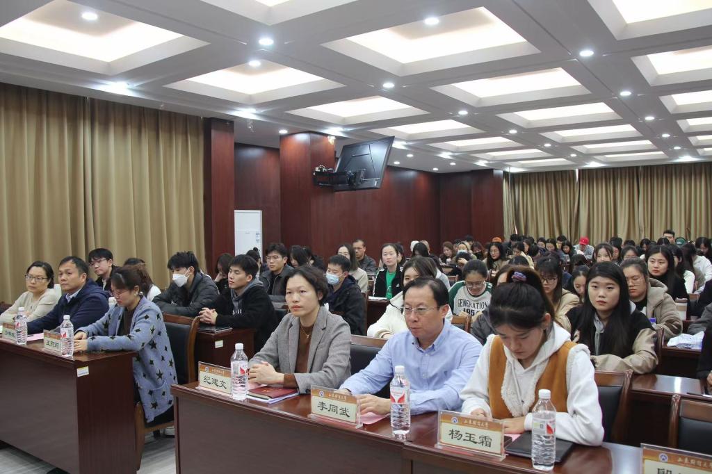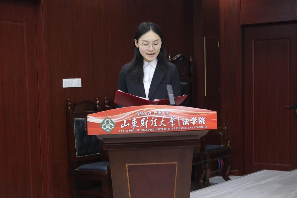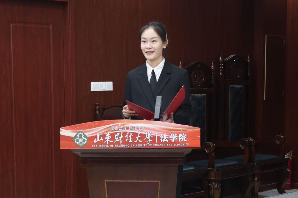 第二届科研立项获得者张文馨作为学生代表发言。作为初涉法制边缘并对未来事业满怀热忱的法学学子,她们号召全体同学勤勉学习,脚踏实地,勇于创新,立志做从事法律工作的新时代有为青年。